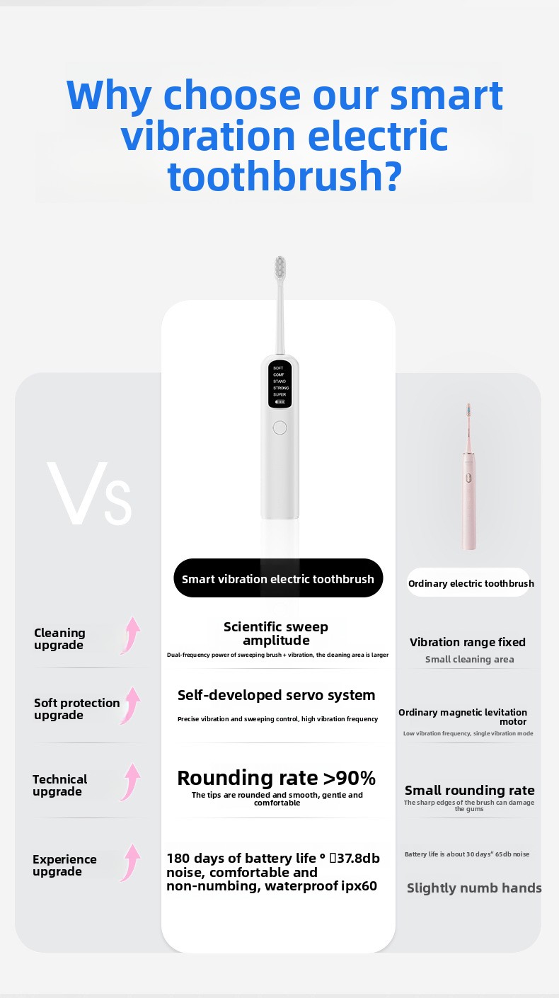 Smart Vibration: Features advanced magnetic levitation motor for efficient cleaning with 5 adjustable modes