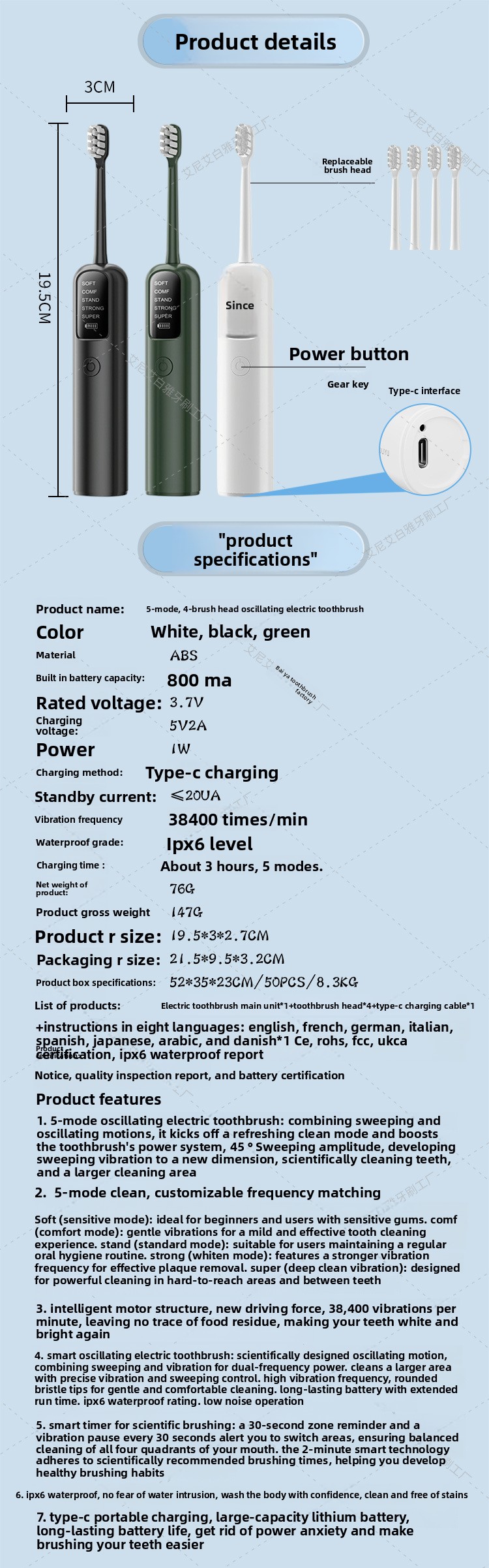 Soft Bristles: Gentle on gums with high-density brush head for thorough plaque removal