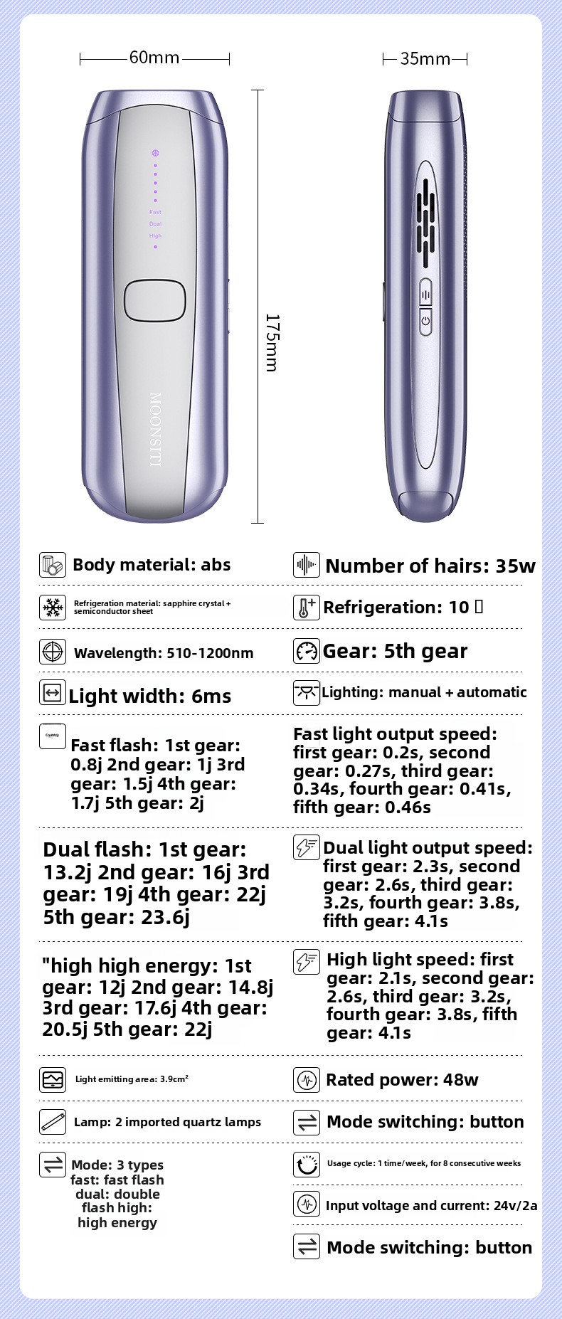 High Energy Density: Delivers 6J/cm� energy for optimal hair removal results.