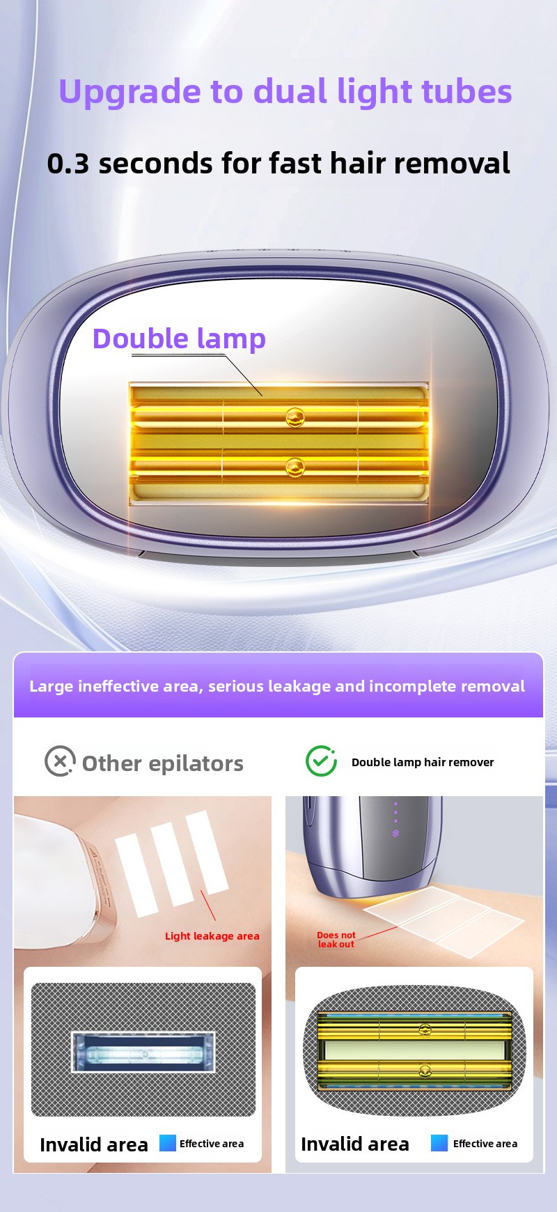 Sapphire Technology: Utilizes sapphire cooling for painless hair removal with effective skin protection.